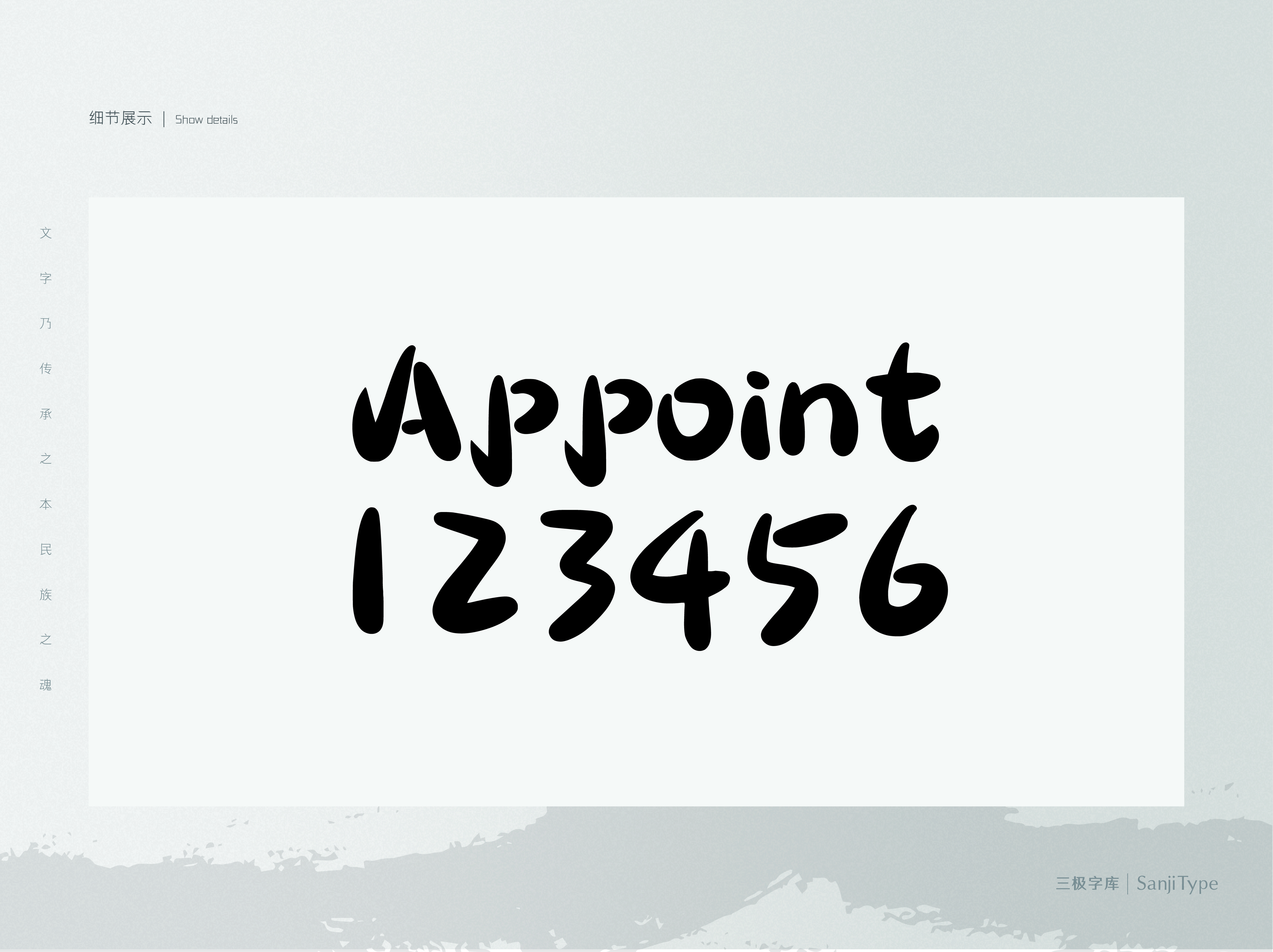 三极拉钩体,笔画较粗,起笔、收尾带钩,有很强的装饰性,富有强烈的节奏感,寓意拉钩上吊,一百年不许变。适合海报标题、片头、产品包装设计品牌宣传等设计中。